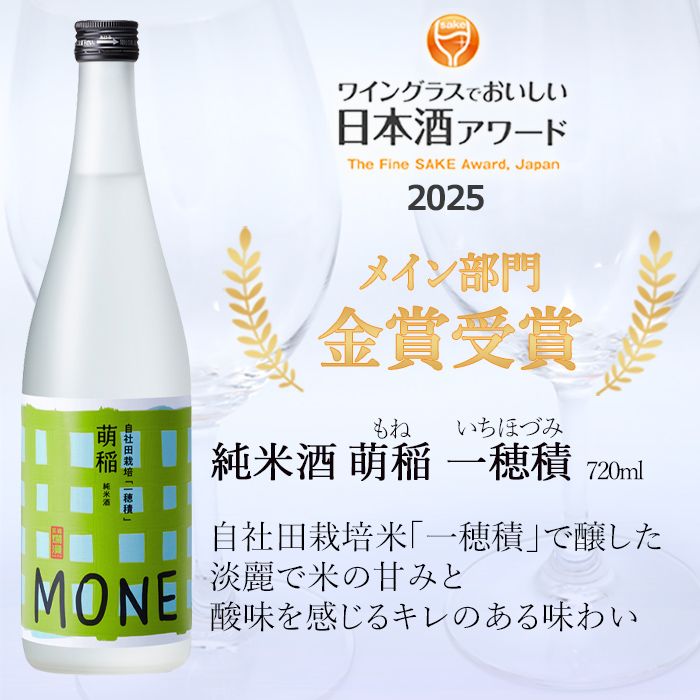 淡麗で米の甘みと酸味を感じるキレのある味わいが特徴の自社田栽培米「一穂積」を100%使用した萌稲を どうぞご賞味ください。