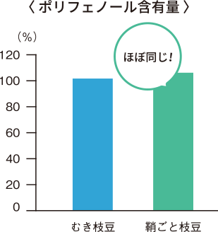 - ● 従来の枝豆(むき枝豆)と同等のポリフェノール量を含有
