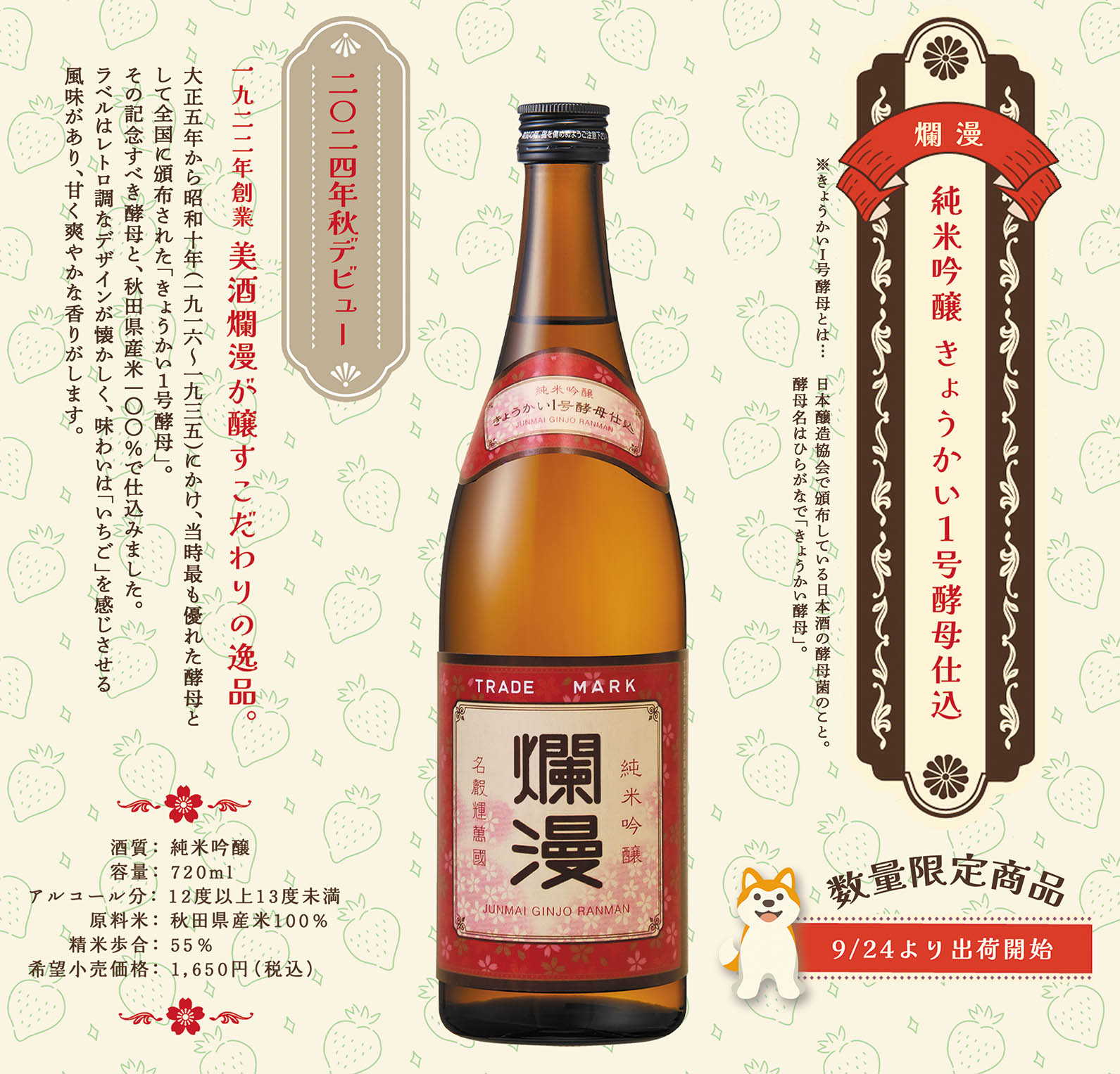 美酒爛漫が醸すこだわりの逸品「純米吟醸きょうかい1号酵母仕込」発売!
