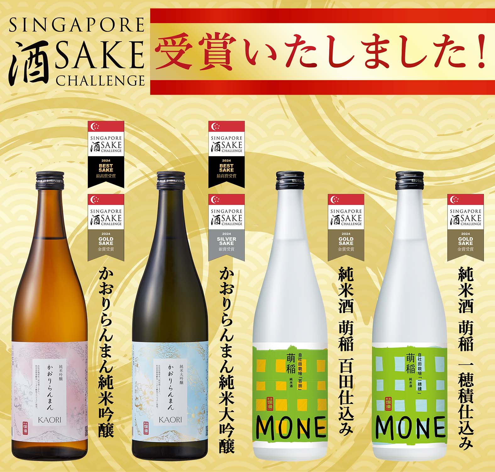 その中で、美酒爛漫醸造元である秋田銘醸株式会社は金賞3点、銀賞1点受賞となり、うち2点は2年連続受賞のため「シンガポール最高賞」も受賞いたしました。